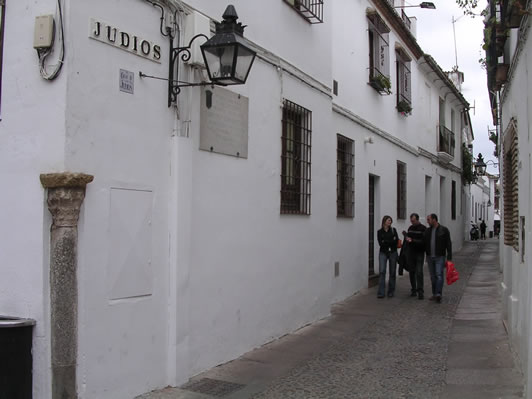 Photo by J. Entrenas - ©2005 View of Judios street from the Gate of Almodovar towards the Synagogue. Notice the ancient column incorporated into the corner of the building. INFO CORDOBA: Cordoba Tourist Information Guide | More Cordoba Photos Support Infocordoba: reserve your Cordoba hotels through one of our reputable partners ©2005 Tony Reed |
